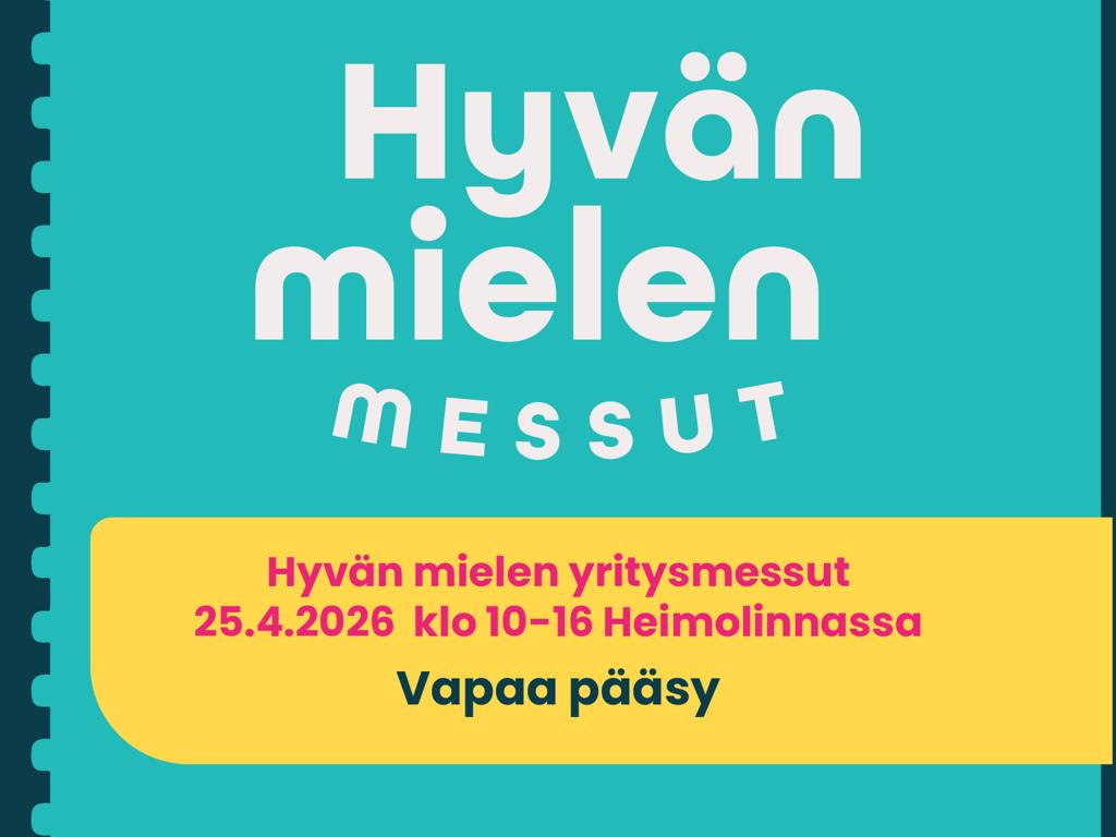 Loimaan Kauppala järjestää Hyvän mielen -teemaiset messut Loimaan Heimolinnassa lauantaina 25.4.2026 klo 10.00–16.00. Tapahtuma kokoaa yhteen eri alojen yrityksiä ja toimijoita – hyvä mieli voi syntyä niin palveluista, tuotteista, elämyksistä kuin arjen pienistä oivalluksistakin.