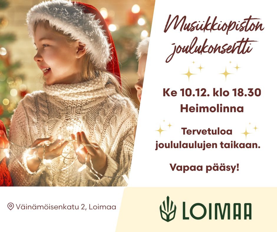 10.12.2025Loimaan musiikkiopiston joulukonsertti ke 10.12. klo 18.30 Heimolinnassa.
