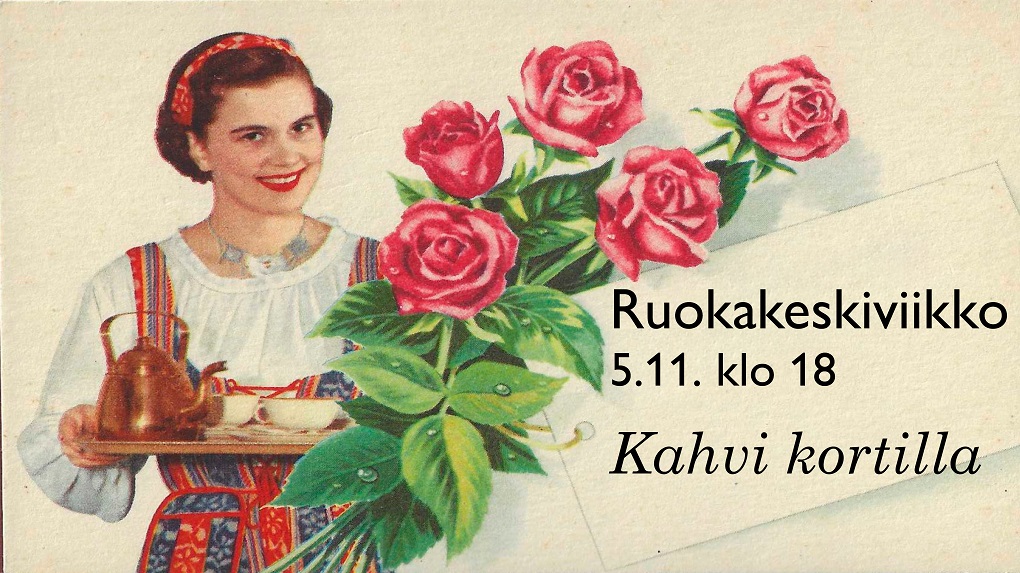 Marraskuun Ruokakeskiviikossa katsellaan yhdessä kahviaiheisia postikortteja eri ajoilta ja kuullaan kahviin liittyvistä tavoista, kuvastosta ja historiasta.